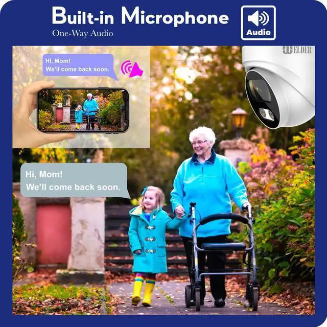 [Built-in Mic & Listen-in Audio] The Elder dome cameras come equipped with built-in microphones that allow for crystal-clear audio. An audio recording would enhance the security coverage and add a significant new feature to your security system, as you will have recorded videos with clear audio and voice.