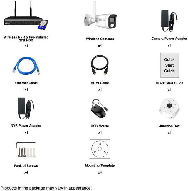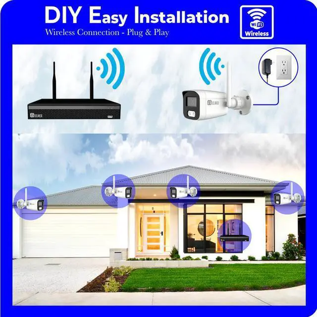 [DIY Easy Plug-&-Play, Auto-Pair Wireless Installation] Elder wireless security camera system is a real plug-&-play surveillance system that doesn't need cables to connect the cameras to the NVR. Simply mount the cameras, power them with the included power adapters, and power on the whole system. Then all the cameras will automatically pair with the NVR via stable WiFi connectivity for video and audio. A stable wireless connection makes it simple to set up and install your wireless security camera system without messy cabling, especially for beginners and fans of DIY (Do-It-Yourself) security systems.