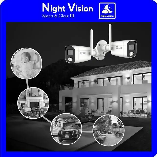 [Smart Night Vision, Hunter-Tech] Being Equipped with the state-of-the-art Hunter-Tech dark-light night vision technology, Elder wireless security camera system allows you to get full-color images even in low-light conditions and clear black & white video footage during the darkness. Hunter-Tech smart night vision technology brings you a higher level of security and enhances image qualities in the nighttime.