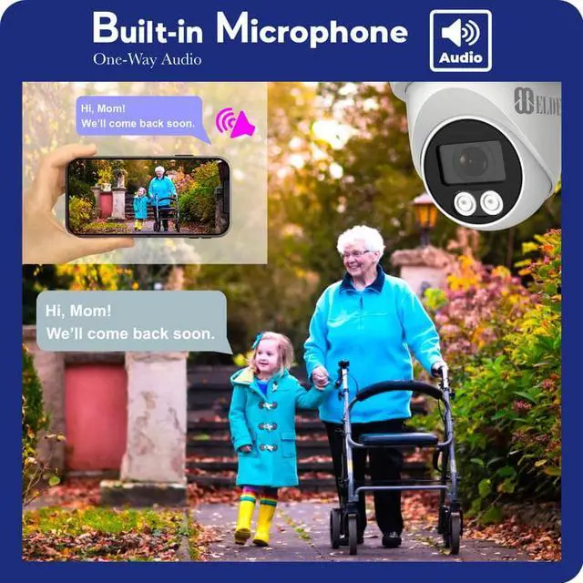 [Built-in Mic & Listen-in Audio] The Elder cameras come equipped with built-in microphones that allow for crystal-clear audio. It features Audio-over-Coax technology, which means the audio and video will be transmitted over a single coaxial cable. An audio recording would enhance the security coverage and add a significant new feature to your security system, as you will have recorded videos with clear audio and voice.