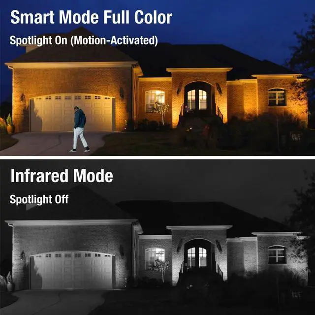 [Motion-Activated Spotlight Deterrence] Spotlight deterrence allows simply protecting your properties and deterring unwanted guests with a motion-activated spotlight that will be triggered automatically when a human motion is detected.