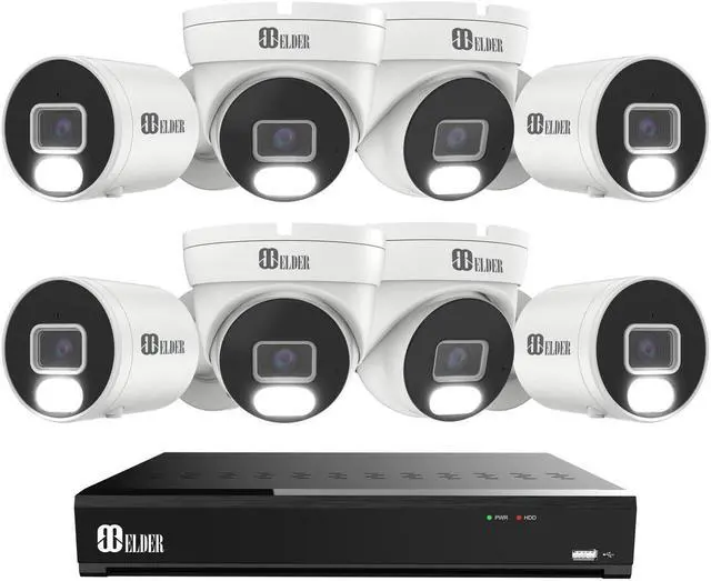 [DIY Easy PoE Installation, Plug-&-Play] Elder security camera system is a real plug-&-play PoE surveillance system! Only a single Ethernet cable is needed to connect a camera to the PoE NVR for video, audio, power, and a stable network connection. A PoE connection makes it simple to set up and install your security camera system, especially for beginners and fans of DIY (Do-It-Yourself) security systems.