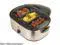 An adjustable thermostat control lets you select a temperature between 150° and 450°, ensuring perfect cooking results every time. The domed lid seals in juices for moist and tender meals. The cool touch handles promote safe use. The brushed-stainless-steel finish provides a stylish appearance and rugged durability.