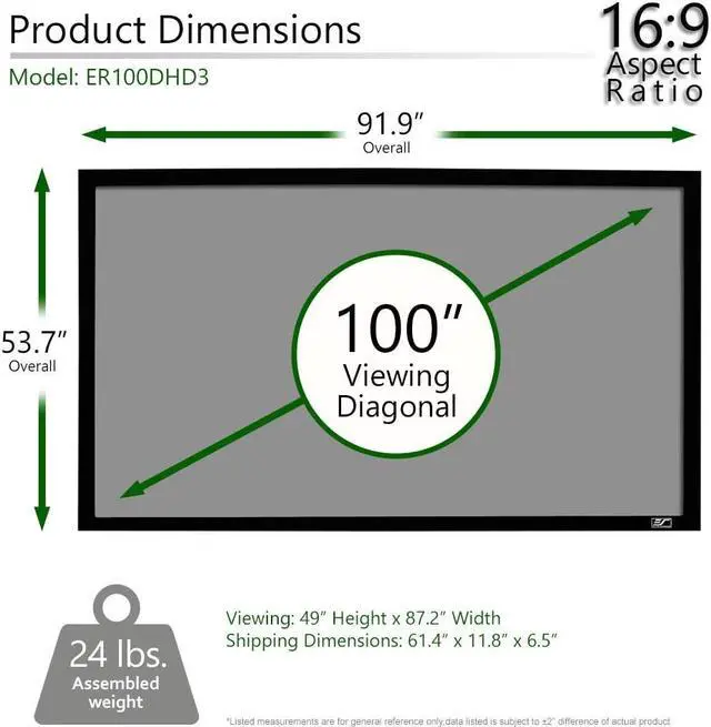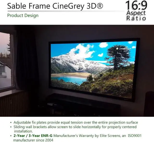 Elite Screens SableFrame ER100DHD3 Fixed Frame Projection Screen - 100" - 16:9 - Wall Mount