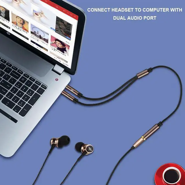 3.5 mm stereo splitter cable allows you to easily connect your stereo headset Mic to a PC audio port and mic port at the same time.