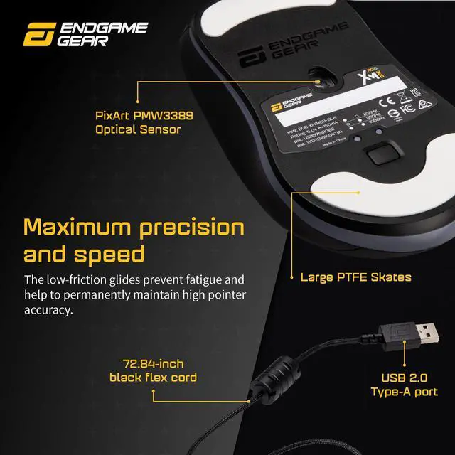 Professional gaming mouse made for ambitious gamers with style, patented analogue technology with signal processing under 1 ms, Pixart sensor PMW3389 with up to 16,000 CPI, preselected Kailh GM 4.0 switches designed for 60 million clicks, low weight of just 2.89 ounces & 0.08 inches LOD, large and low-friction PTFE glides for maximum precision, RGB lighting spread across three zones.