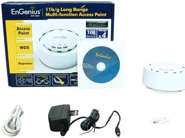 | Features | Aesthetic "Smoke Detector" Design Minimal footprint and no protruding antennas Designed to blend in to various business environments Unobtrusive design prevents tampering to protect your investment High 600mW Wireless Power Ensures robust signal to overcome long distances Offers superior WiFi coverage than leading brands Multiple Wireless Names Broadcasts multiple WiFi networks with one device Permits different levels of network access (VLAN Tagging) Power-over-Ethernet (802.3af Compliant) Power and data over one cable to ease deployment Universal Repeater Extends WiFi coverage into dead spots Minimizes trenching and cabling cost Embedded Antenna Delivers powerful omni-directional coverage Designed to deployable out of the box |