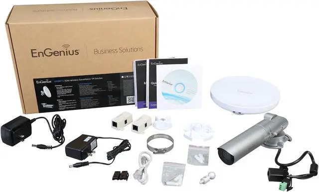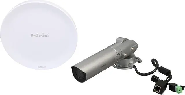 Eyes on Everywhere Security concerns top the agenda of many organizations today. But not all surveillance challenges fit into a neat little box. From airports to parks, farms and military bases, some locations extend for miles and bear the brunt of the elements. Campuses, civic centers, shopping complexes plus indoor and outdoor arenas can be crowded with buildings and other obstructions, and may also be saturated with a spectrum of RF signals. Superior Connectivity by Far Longer connectivity distances can be achieved when two Outdoor APs of the same frequency band are paired together in a Point-to-Point (PtP) deployment, aligning their dish-shaped antennas to face each other. Thus, each gets the full impact of the focused narrow wireless single beam which helps reduce frequency interference over long-range transmissions.Excellent Performance...HD Recording: YesNight Vision Distance: 32.81 ftNumber of IR LEDs: 12Image Sensor Type: CMOSColor Supported: ColorColor Supported: MonochromeEffective Camera Resolution: 1 MegapixelVideo Formats: H.264Video Formats: Motion JPEGVideo Formats: MPEG-4Maximum Video Resolution: 1280 x 720Focal Length: 4 mmConnectivity Technology: CableConnectivity Technology: WirelessRemote Management: YesNetwork (RJ-45): YesForm Factor: Pole MountForm Factor: Wall MountForm Factor: BulletHeight: 4.7Width: 5.7"Depth: 10.8"Weight (Approximate): 1.65 lbPackage Contents: Wireless 5GHz IP Surveillance System 12V/1A Power Adapter Mounting Kit RJ-45 Ethernet Cable Quick Installation Guide EnStation 2 Outdoor CPE PoE Injector (EPE-1212) with Power Adapter (24V/.6A) Pole/Wall Mounting Kit Mounting Screw Set Quick Installation Guide Limited Warranty: 1 YearPackage Contents Wireless 5GHz IP Surveillance System 12V/1A Power Adapter Mounting Kit RJ-45 Ethernet Cable Quick Installation Guide EnStation 2 Outdoor CPE PoE Injector (EPE-1212) with Power Adapter (24V/.6A) Pole/Wall Mounting Kit Mounting Screw Set Quick Installation Guide "