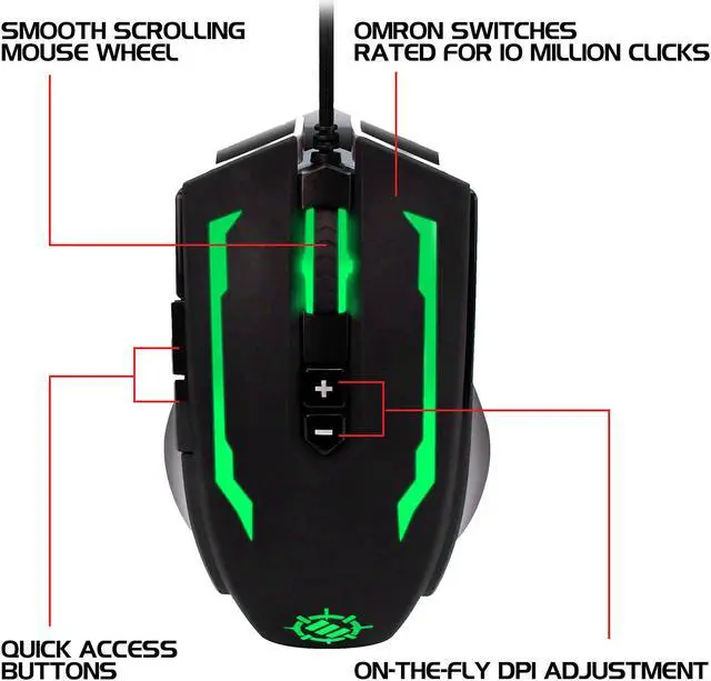 - 7 PROGRAMMABLE BUTTONS can be customized through the included ENHANCE Software to quickly activate frequently used weapons, actions, or items on the SCORIA Gaming Mouse