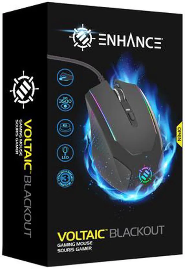 The ENHANCE Voltaic Blackout was built with the PC gamer in mind with 6 easy-to-reach buttons designed for your macros and hotkeys and the ability to change the DPI setting in seconds! The DPI switches from 1200, 2400 and 3500 DPI to give the perfect range of sensitivity. In addition, the premium optical sensor adds pinpoint precision and control so your cursor never slips or skips. Plug-n-Play design means no driver installation; simply plug into a USB port and go!