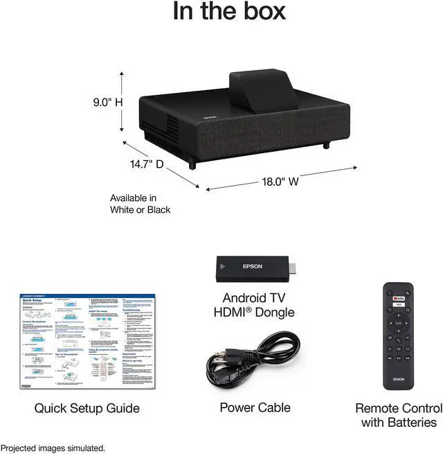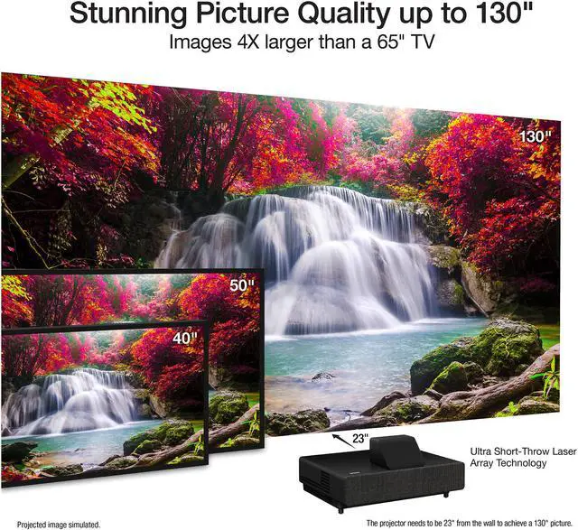 | Features | Stunning Picture Quality up to 130" Delivers an immersive, bright viewing experience for TV shows, sporting events, gaming and movies.