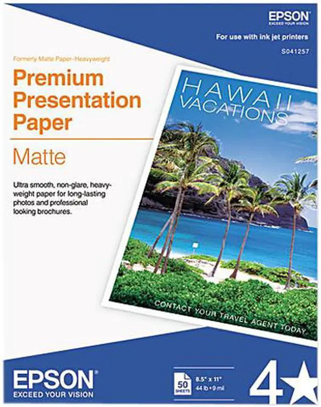 Epson Presentation Paper - Letter - 8 1/2" x 11" - 44 lb Basis Weight - Matte - 50 / Pack - White