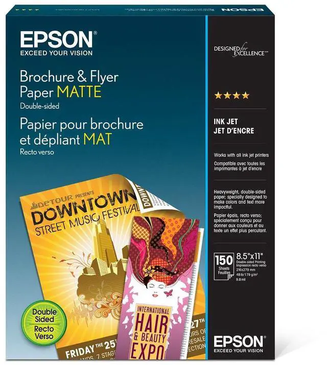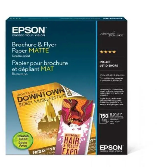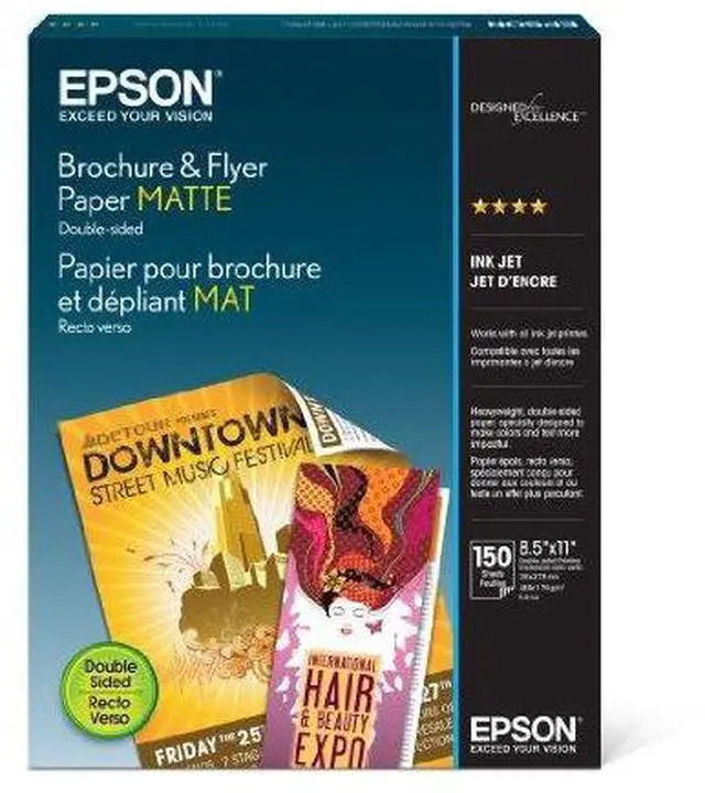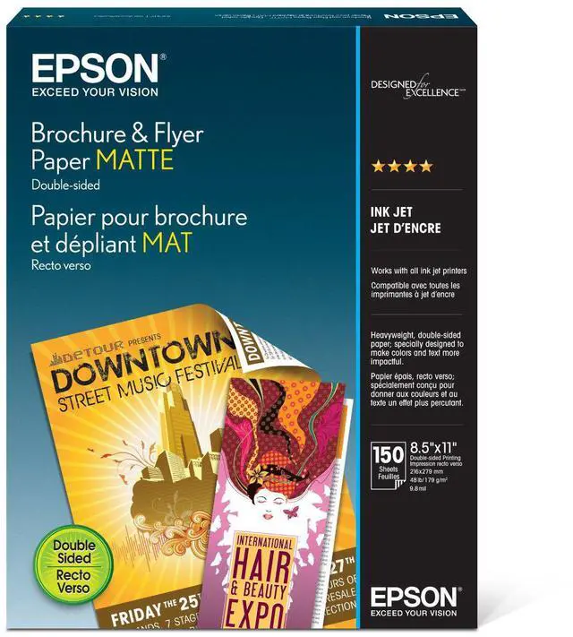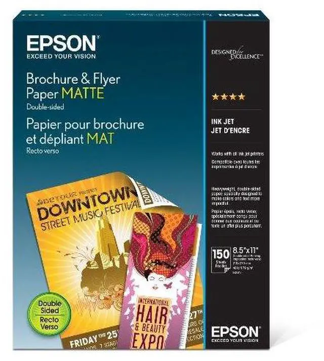 Heavyweight paper stock provides a premium look and feel Specially designed with a matte coated finish to make colors and text impactful Double-sided - print on both sides Great for brochures, flyers, calendars, newsletters, and much more Works with all ink jet printers Long lasting prints - preserve your treasured memories Available in a variety of sizes - find the perfect paper for your project Backed by Epson's Satisfaction Guarantee
