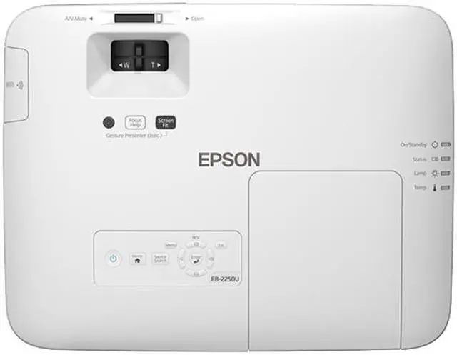 Full-HD projector features 5,000 lumens of equal color and white brightness to produce rich, brilliant colors with great contrast in a variety of lighting conditions. Built-in speaker powerfully amplifies audio for more impactful presentations. WUXGA resolution (1920 x 1200) and advanced wired and wireless support, including MHL and HDMI, allow you to project HD-quality presentations from laptops, mobile and streaming devices. Auto-screen fit lets you easily and quickly adjust the image to fit the screen for optimal viewing. Split screen allows you to simultaneously project two images (video or still) side-by-side from two different sources. Long-lasting lamp provides up to 10,000 hours in ECO mode for cost-efficient performance. This powerhouse projector also includes enterprise-level wireless security (module sold separately) for added peace of mind when using the optional wireless networking.