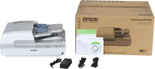 Epson WorkForce DS-7500 Scanner Setup Sheet USB cable Software CD AC adapter and power cable