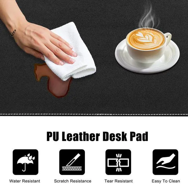 Yes! Made with waterproof PU leather, this desk pad resists spills and stains. It also acts as a table heat protector pad, shielding your desk from hot cups or plates. Simply wipe clean with a damp cloth.