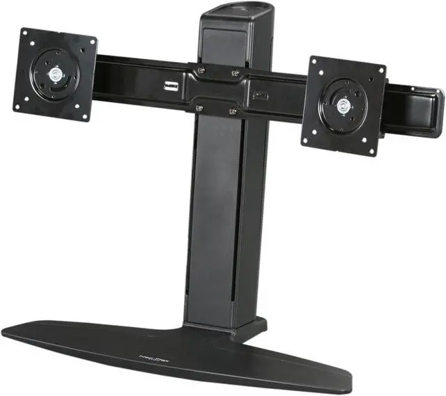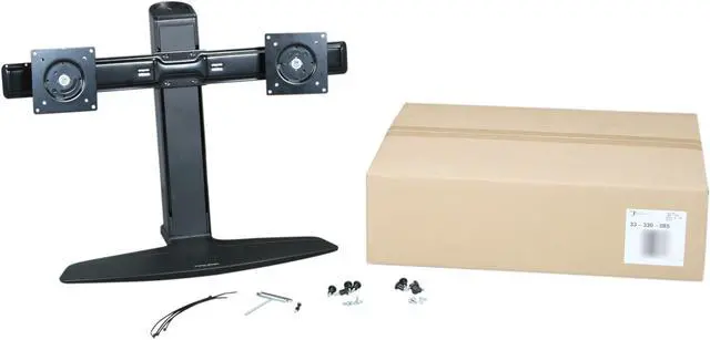 Affordable, height adjustable dual-monitor stand for maximum productivity and comfort. Save time by using multiple applications at once eliminate toggling back and forth between documents and programs. Simultaneously lift LCD screens to proper height for unsurpassed ergonomic comfort.