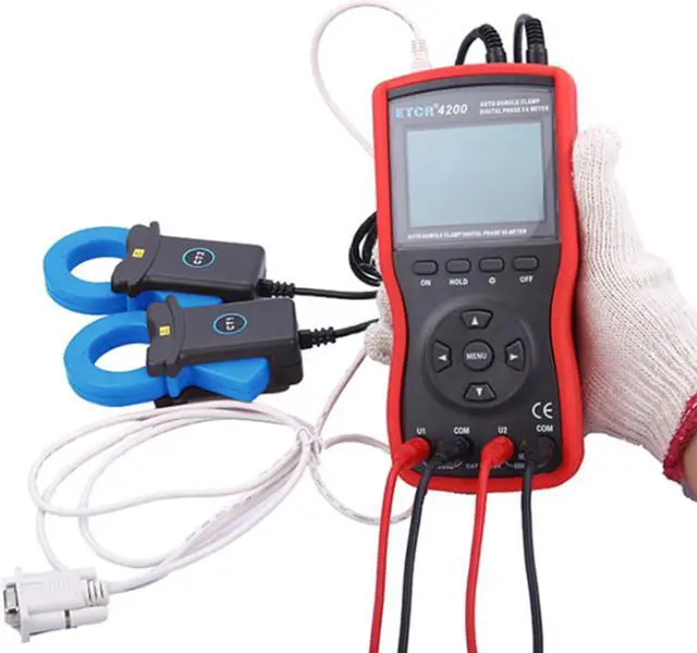 ETCR4200 Large Caliber Double Clamp Digital Phase Voltmeter adopts new materials to design and manufacture out shell mold,with shake proof, skid proof, and high insulation sheath. Adopts 2.8 inch LCD screen, all parameters display on same screen, clear and obvious, which shows the exquisite and luxurious appearance. equipped with USB interface, which can store 500 groups of data, upload the storage data to the computer by the system software, realize online real-time monitoring and historical query, dynamic display, can read, save, report, print historical data, etc. The instrument adopt large caliber current clamp, suitable for testing of thick conductor and large current place. the instument complete contains the function of general mechanical double clamp digital phase voltmeter. Suitable for electric power, petrochemical, metallurgy, railway, industrial and mining enterprises, scientific research institutions, measurement departments.Especially suitable for electric energy billing system and relay protection system, its power supply Marketing Department of electric energy measurement, electricity inspection, electric power inspection, the production and technology department of the table connected to electricity, relay protection, differential detection, starting test, transformation maintenance, or electric power training, skills competition and so on.