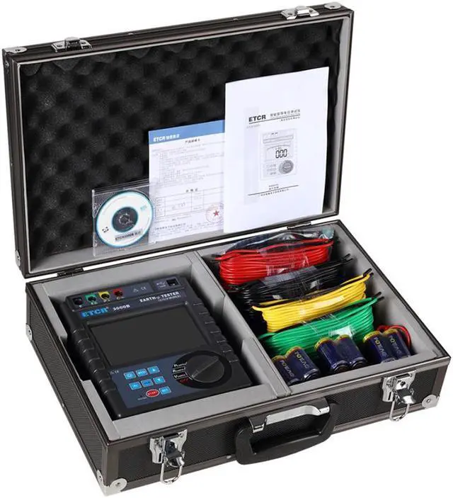 ETCR3000B Earth Resistance Soil Resistivity Tester is composed of host machine, monitoring software, test wires, auxiliary ground rod and communication cable. Host machine with large LCD display, white backlight, bar chart indication, clear at a glance. It can store 300 sets of data at the same time, through the monitoring software to relize historical access and online real-time monitoring functions, dynamic display, alarm indication, with historical data reading, accessing, saving, reporting, printing and other functions