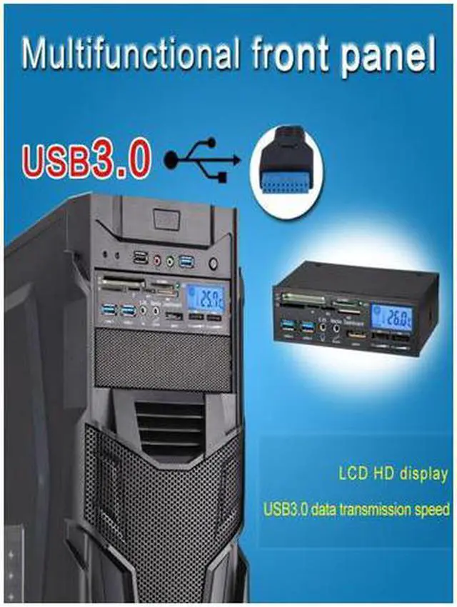 PCI-E TO 5.25 internal USB 3.0 Host + USB 2.0 Card Reader+SATA+LCD+2FAN