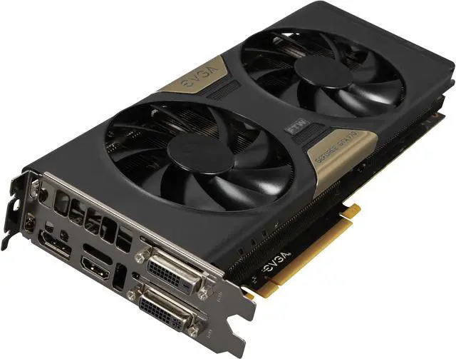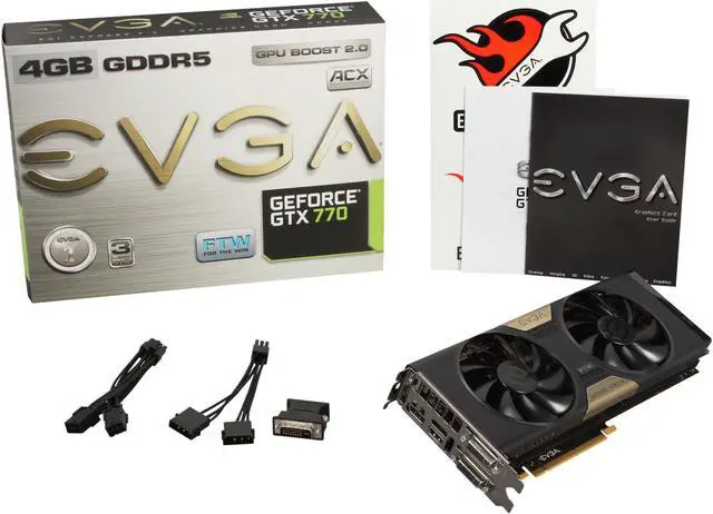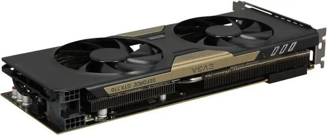 The EVGA GeForce GTX 770 with EVGA ACX cooler is a high-performance graphics card that delivers high-speed, super-smooth gaming. With the GeForce GTX 770 GPU, nothing will hold you back from taking on – and dominating – your most challenging games. It is stacked with unique gaming technologies, like NVIDIA GPU Boost 2.0, which makes it fast. Really fast.
