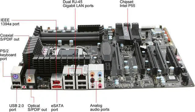 | Back I/O Ports | 1 x Optical S/PDIF Out / 1 x PS/2 / 1 x S/PDIF Coaxial Out / 2 x eSATA 3GB/S / 6 x USB 2.0/1.1 |