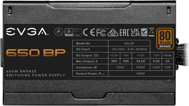 EVGA 650 BP, 80+ BRONZE 650W, 3 Year Warranty, Compact 120mm Size, Power Supply 100-BP-0650-K1