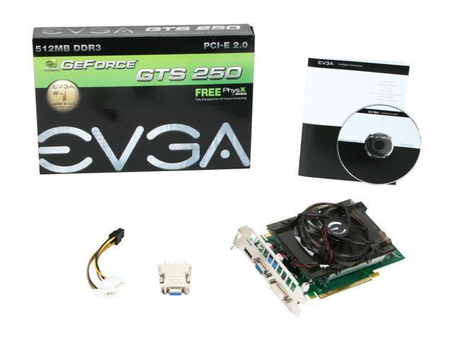 EVGA GeForce GTS 250 DirectX 10 512-P3-1140-TR 512MB 256-Bit DDR3 PCI Express 2.0 x16 HDCP Ready SLI Support Video Card