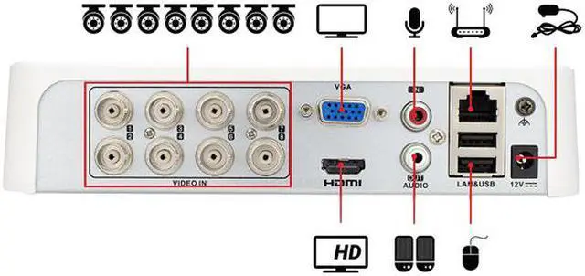 4 Cameras, 8 Channel HD Analog DVR Security System with 1TB HDD