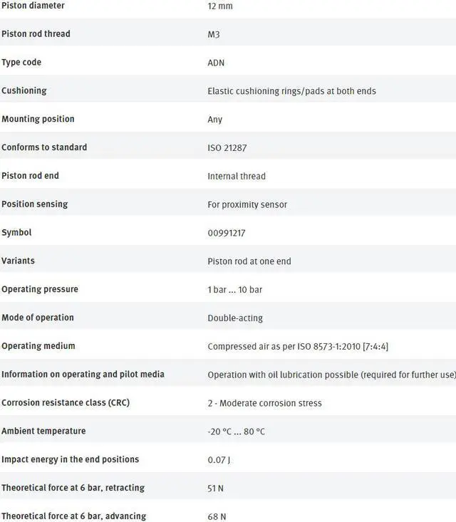 FESTO ADN-12-10-I-P-A 536212 Compact Air Cylinder New