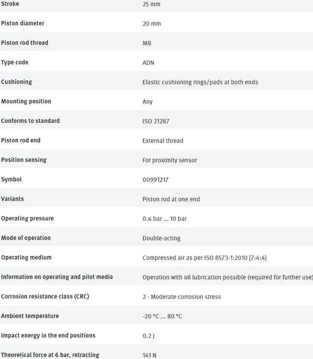 FESTO ADN-20-25-A-P-A 536238 Compact Air Cylinder New