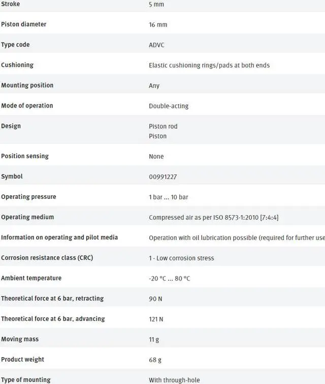 FESTO ADVC-16-5-A-P 188123 Short-stroke Cylinder New