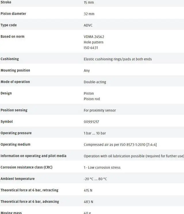 FESTO ADVC-32-15-I-P-A 188206 Short-stroke Cylinder New