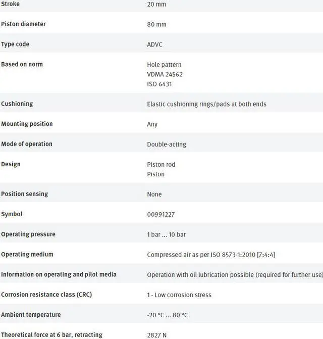 FESTO ADVC-80-20-I-P 188314 Short-stroke Cylinder New
