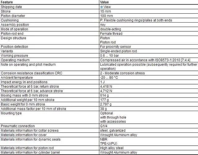 FESTO ADVU-100-15-P-A Compact Cylinder 156578 Stroke 15 mm