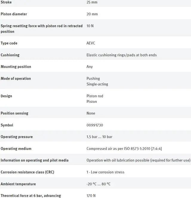 FESTO AEVC-20-25-A-P 188139 Short-stroke Cylinder New