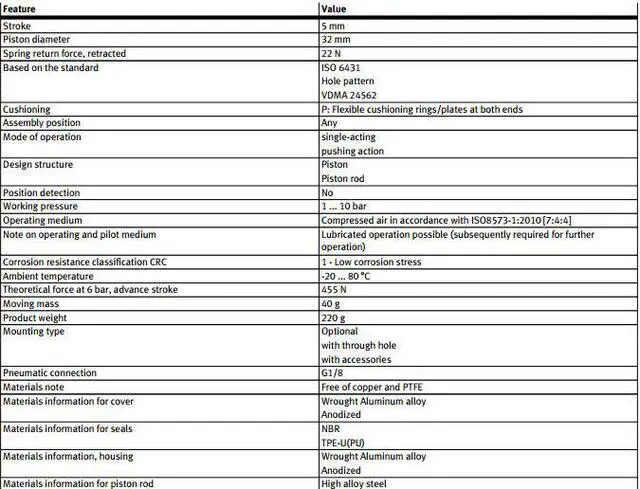 FESTO AEVC-32-5-I-P Short Stroke Cylinder 188195 Stroke 5mm