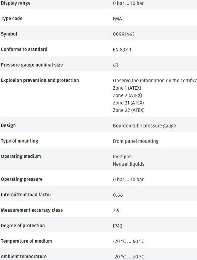 FESTO FMA-63-10-1/4-EN 159602 Flanged Pressure Gauge New