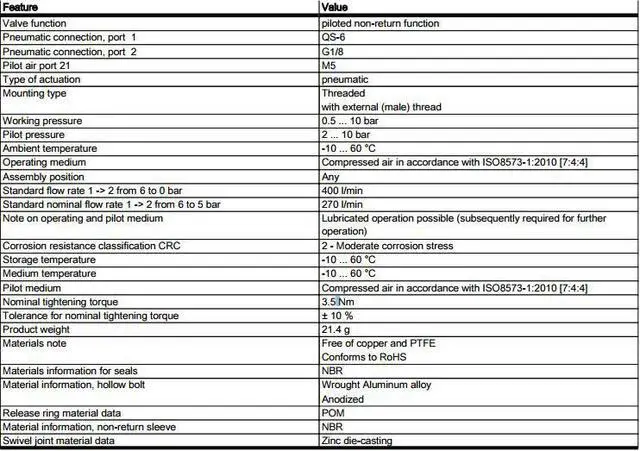 FESTO HGL-1/8-QS-6 Piloted Check Valve 530040