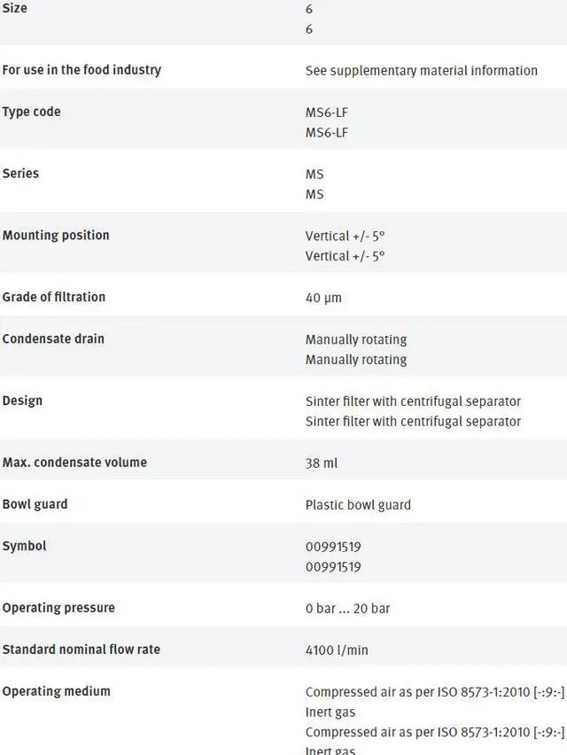 FESTO MS6-LF-1/2-ERM 529615 Compressed Air Filter New
