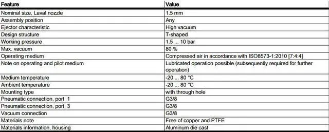 FESTO VAD-3/8 Vacuum generator 19294 Nominal Size 1.5mm