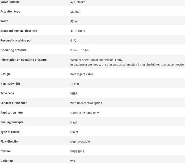FESTO VHER-H-B43C-G12 3192065 Hand Lever Valve New