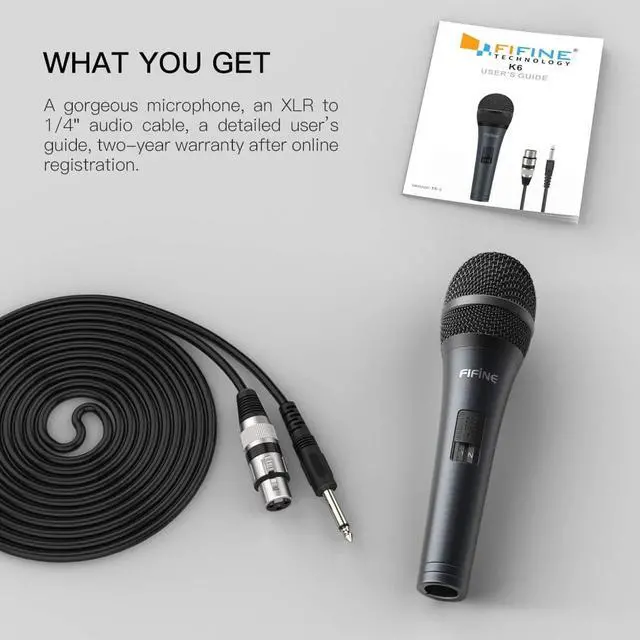 CARDIOID DYNAMIC MICROPHONE-Wired microphone features a cardioid pickup pattern for greater gain while simultaneously minimizing feedback. Ideal for live situations where noise cancellation is needed, that makes handheld microphone remarkable for presentation, wedding, conference, church, interview and solo performances. FLAT, WIDE-RANGE FREQUENCY-The smooth frequency range is solid at 50 to 18 kHz, suited well for handling high sound pressure levels. It is tailored for spoken word, vocals, various instruments. Having no power requirement makes dynamic microphone the ideal choice for any live applications. OPTIMAL SPEECH INTELLIGIBILITY-Such is vocal microphone that it delivers an low distortion for clean sound output, precise reproduction of speech and vocals with excellent intelligibility.