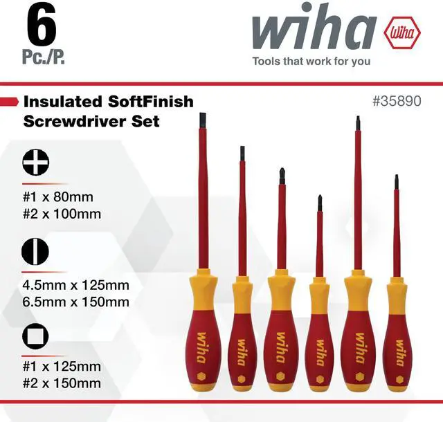 Wiha Insulated SoftFinish Cushion Grip Drivers are the standard for premium quality featuring ergonomic cushion grip handles for comfort and control, dual durometer construction for long-lasting durability, and handles directly molded to the blade for a permanent bond.