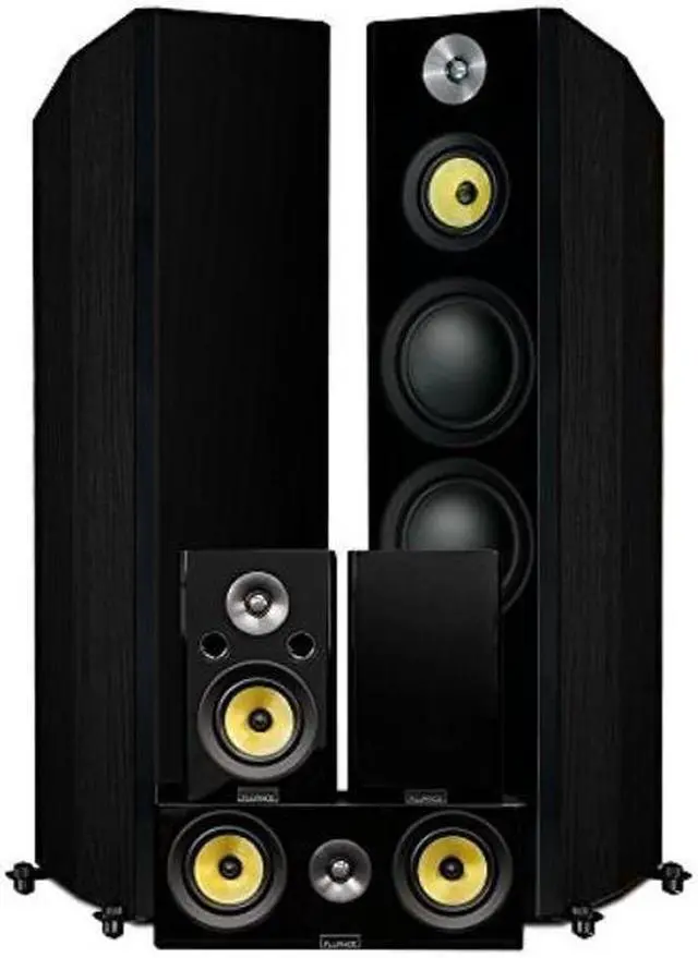 What's Included: Two Surround Sound Speakers, Center Channel Speaker, Two Floorstanding Speakers, Four Outrigger Speaker Stabilizers, Eight Isolation Floor Spikes, Integrated wall mounting brackets (keyhole slots), Sound Isolation Foot Pads, Magnetic Front Grills, Instruction Manuals, Lifetime Customer Support, Full Lifetime Parts and Labor Manufacturer's Direct Warranty