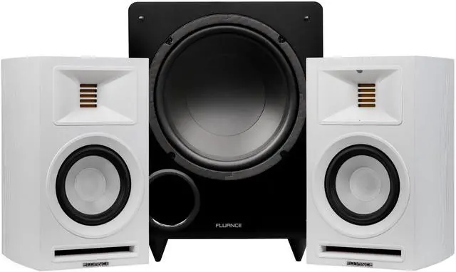 At Fluance, we believe everyone should experience sound as the artist intended - whether it's the thrill of a live concert or the detail of a studio recording. In the spirit of authentic audio reproduction, we present the Ri71 Powered Bookshelf Speakers and DB10 Powered Subwoofer.