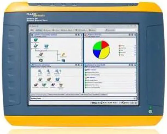 Network Engineer's tablet with dedicated custom hardware for automated network and application analysis in the deployment and troubleshooting of new technologies. It's at home in the data center with support for 10 GbE and virtualized servers; at the users' office supporting 802.11n and application analysis; and with the switches and routers in between. Use it to find problems from your desk or take it - with the data it has collected - to the trouble spot for first-hand analysis. Its unique troubleshooting system is based on proactive analysis, path analysis, and application-centric analysis, which provides expert guidance that automatically identifies the root cause of problems.