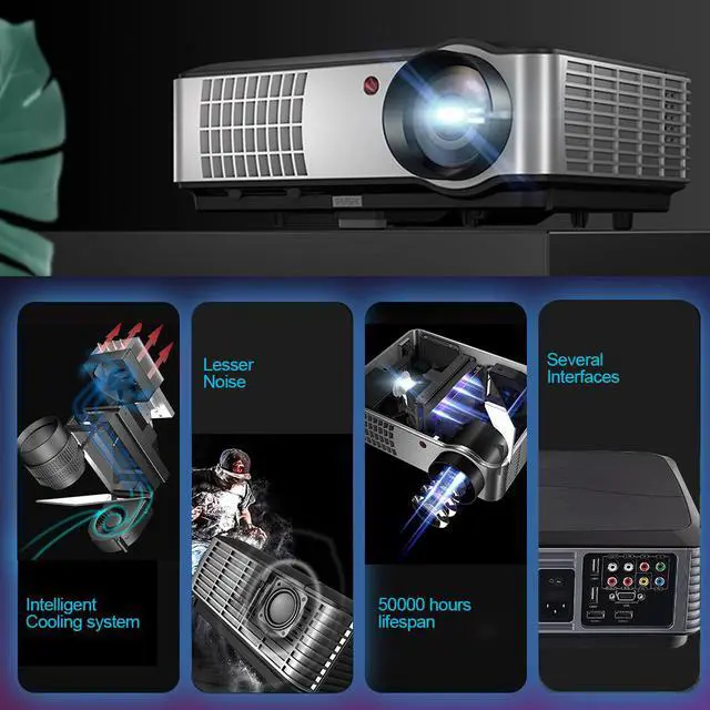 1. 5000 Lumens, adding 80% better brightness than other projectors, provide a brighter viewing. 15000:1 high contrast, 1080P FULL HD native, 720P/4K compatible.