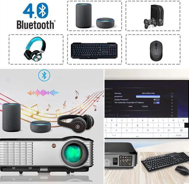3.The F1A projector equipped with WiFi, Airplay/Miracast/DLNA/Screen Mirroring devices connected directly, stream massive online videos/photo/music without bothering to buy various cables/adapters.