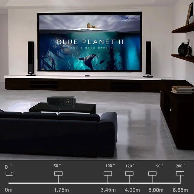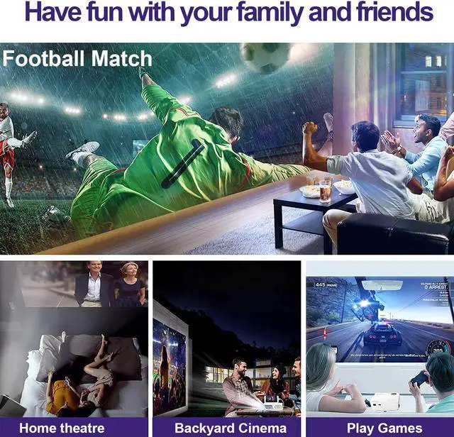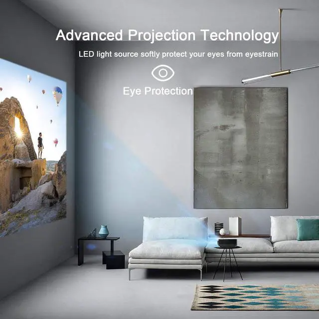 Main Features: * 5000 lumens high power LED lamps, 10000:1 contrast ratio, 1080P Native resolution, Max 4K. * Diffuse light protect your eyes. * Work with red and blue 3D, good 3D experience with red and blue 3D glasses.